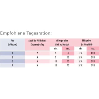 Kätzchen benötigen in den ersten Lebenswochen eine richtige Ernährung, um gesund heranwachsen zu können. Reicht die Muttermilch aufgrund einer hohen Wurfgröße nicht aus oder verweigert die Katzenmutter das Säugen, sollte Milchersatz den Katzenwelpen zugefüttert werden.